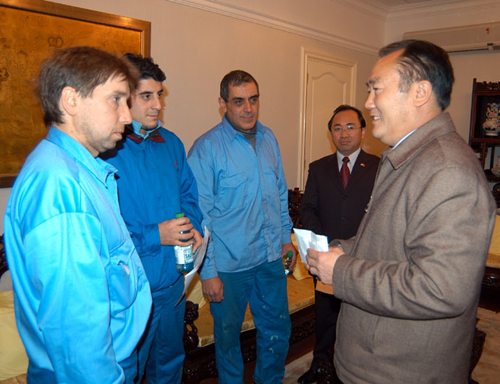 我馆李永祥代办和陈风商务参赞热情接待了该公司代表,向他们的爱心之举表示由衷的感谢,并向他们赠送了象征两国友谊的徽章。