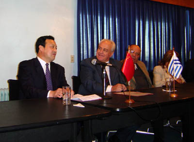 中纪委驻交通部纪检组组长金道铭率团访问乌拉圭--我交通部赠送乌交通部五十台电脑